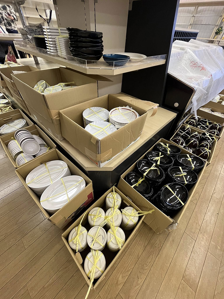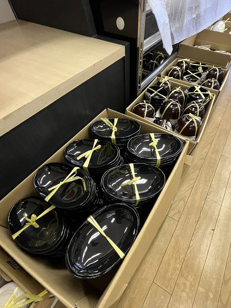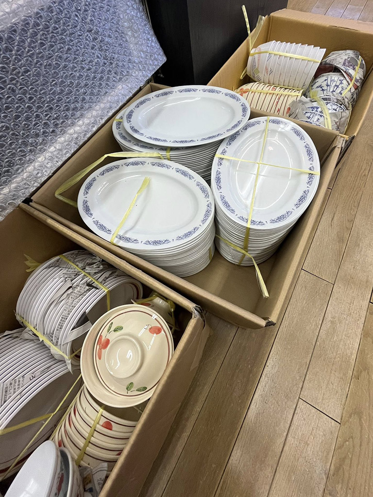 その活動の一環で、未使用のメラミン食器を大量に頂きました。